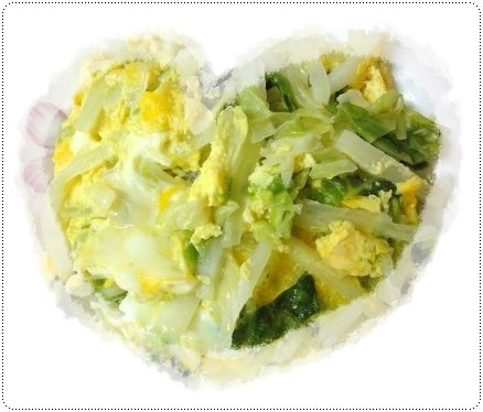 材料:山東大白菜(半顆)、蛋(3顆)、蒜頭(幾瓣)、鹽