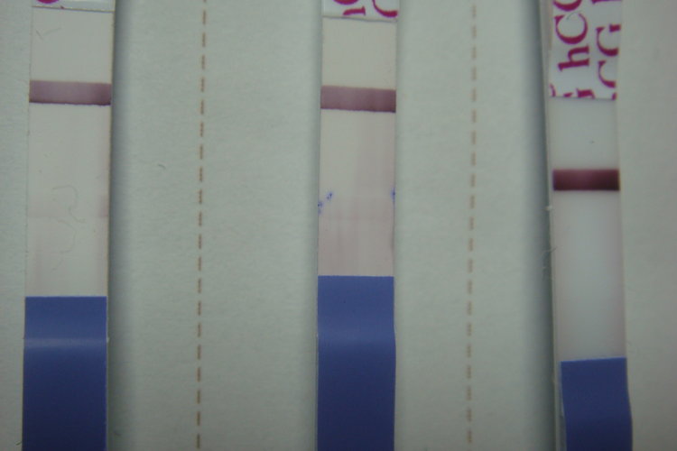 1號:5/1晚,心血來潮驗一張,感覺尿液裡有雜質,那天分泌物好像也比較多,尿液上升的有點慢,後來竟然出現兩條線,我心想這試紙應該是壞了