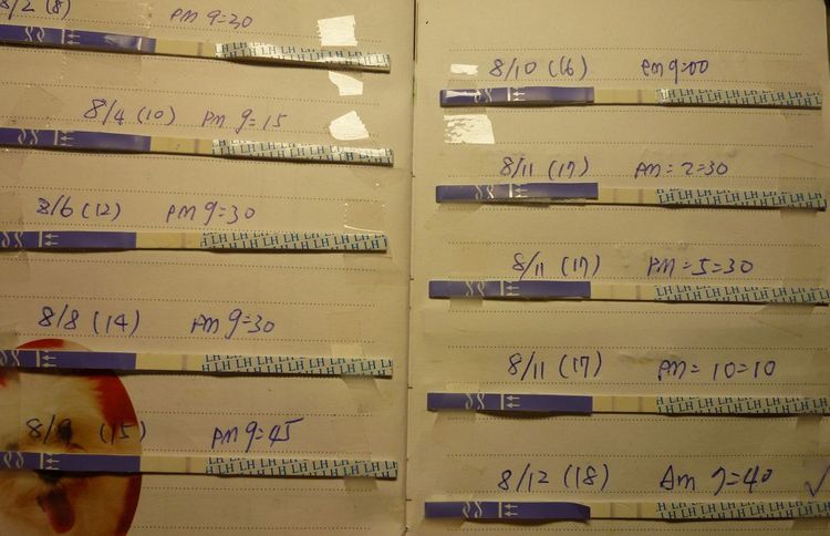 我是從上次上次經期後的第八天開始測試(因為我的週期比較長一點 好像都要到32天 我猜一半是第16天排卵 所以我提早到第八天開始驗 )