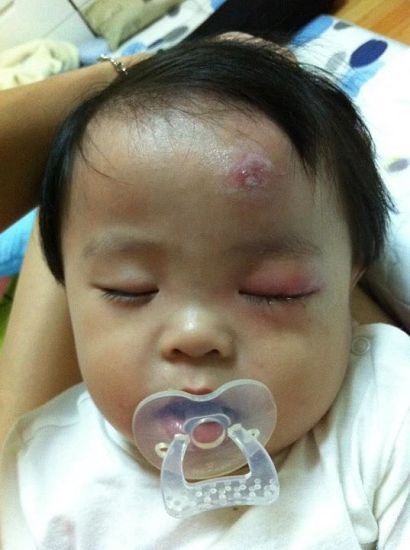 在上禮拜的時候,額頭出現一個像是蚊子咬的小紅點