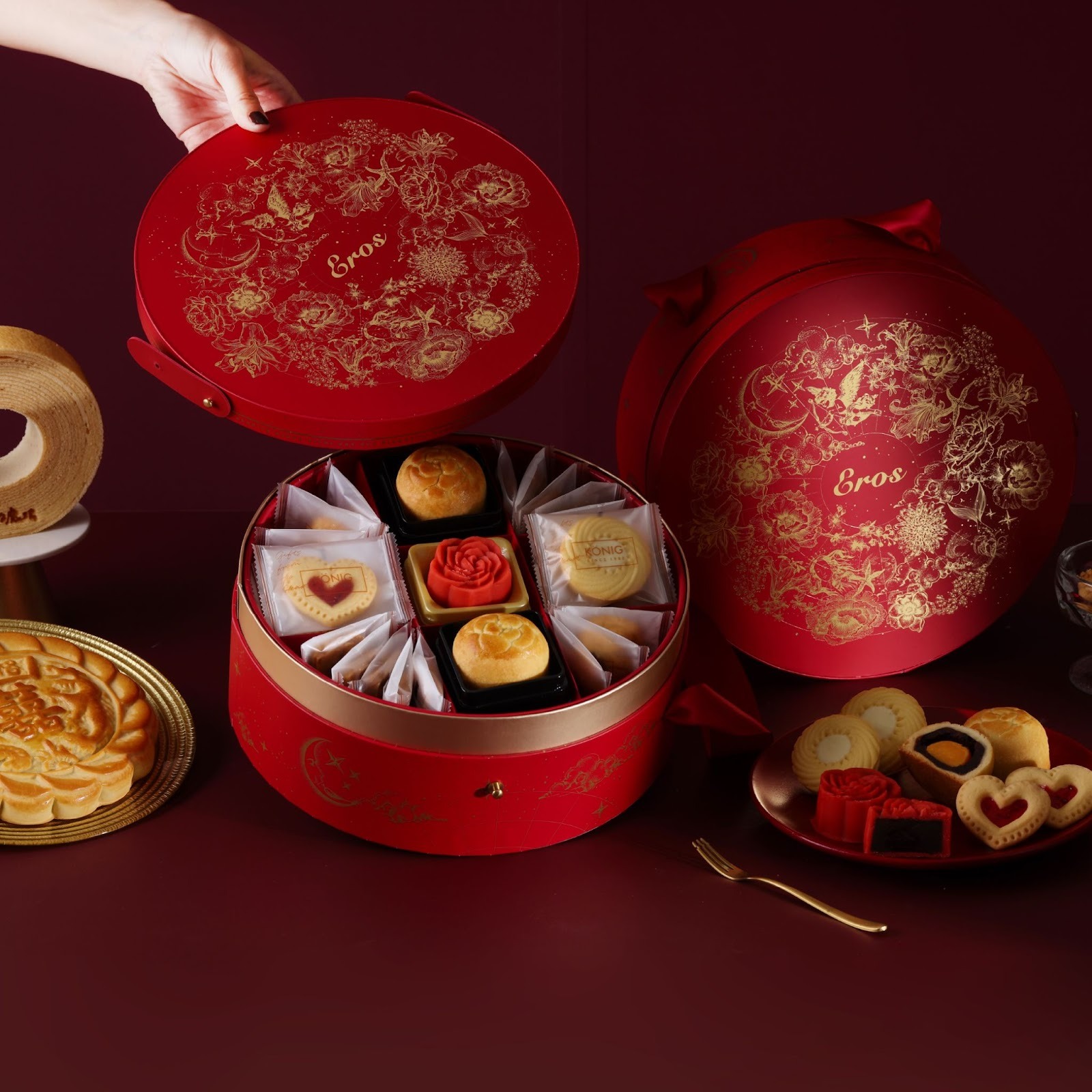 除了高顏值與話題性,口味上能夠自由選擇中式漢餅或是西式年輪蛋糕,搭配各種西式小點。不僅一次滿足不同年齡層的味蕾,也避免了「有人嫌太傳統、有人嫌不夠大器」的困擾。